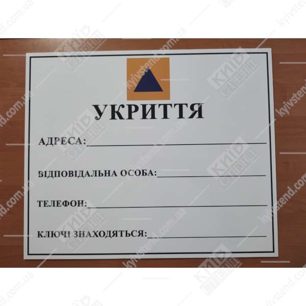 Всі індивідуальні дані в табличку Місце для УКРИТТЯ можна вписати за допомогою незмивного маркера. Але ми також можемо надрукувати Ваші дані одразу на табличці. При замовленні напишіть в примітках, будь ласка, чи треба доповнити текст на табличці. І якщо треба, то що саме слід надрукувати. Напишіть потрібний текст в коментарях до замовлення чи зв'яжіться з нами за допомогою зручного для Вас месенджера.