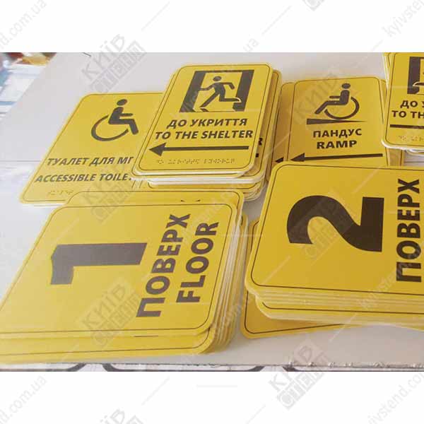 Вы также можете быстро заказать и купить в Киевстенд таблички для этажа в популярных синем, черном, зеленом и других цветах и с любым текстом, для этого просто напишите свои пожелания в примечаниях к заказу или обратитесь к нам на удобный для вас мессенджер или эмейл ! 050-542-80-38