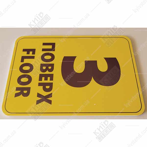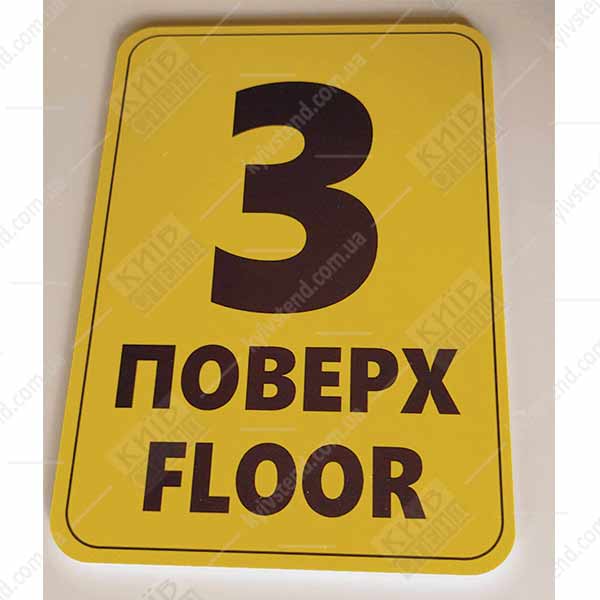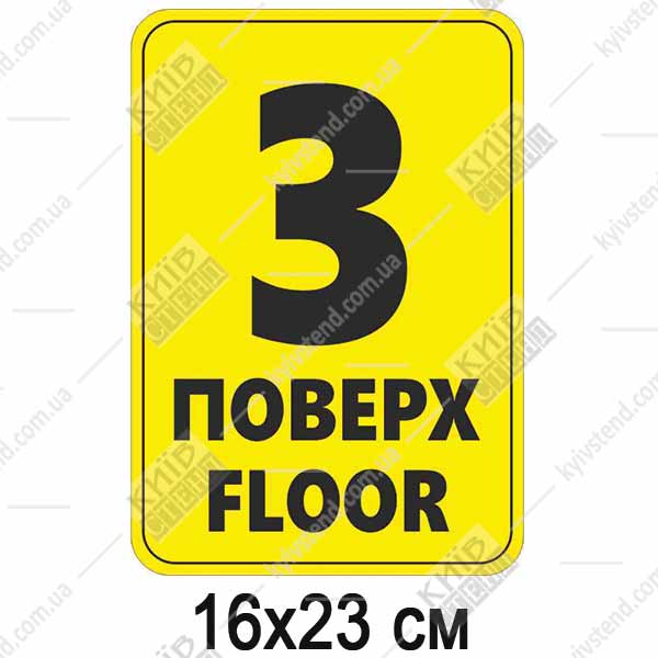 Табличка для 3 этажа на английском пластиковая в контрастном желто-черном цвете, что обычно привлекает внимание. Благодаря ей очень легко будет ориентироваться на лестнице или у лифтов. Эта пластиковая табличка долговечна, устойчива к повреждениям и легко моется любыми моющими средствами. Изображение нанесено способом высококачественной полноцветной печати на пластике, а углы таблички скруглены, что выглядит очень красиво и аккуратно. Табличку с номером этажа размещают на лестнице или возле лифтов, ее очень легко установить в нужном месте на двухсторонний скотч, который уже в комплекте на обратной стороне. Размер таблички стандартный, обычно таблички такого формата удобно использовать в помещениях любого размера.