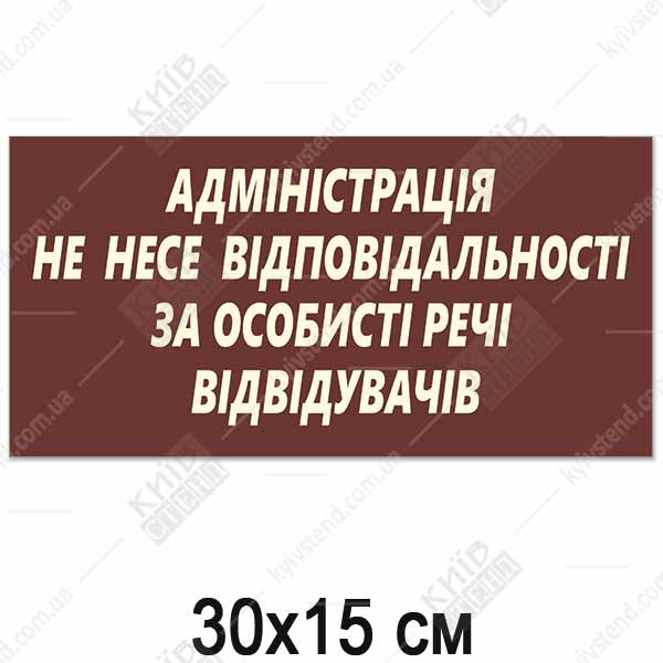 Табличка АДМІНІСТРАЦІЯ НЕ НЕСЕ ВІДПОВІДАЛЬНОСТІ (14314)