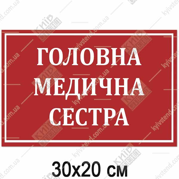Табличка главная медицинская сестра для кабинета 30х20 см пластик