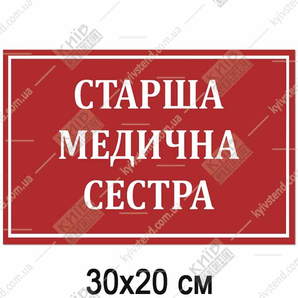 Основные характеристики: Табличка СТАРША МЕДИЧНА СЕСТРА
