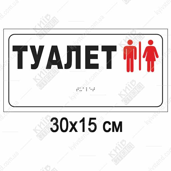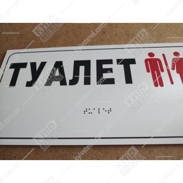 Тактильная табличка 30х15 см для туалета с пиктограммой и шрифтом Брайля