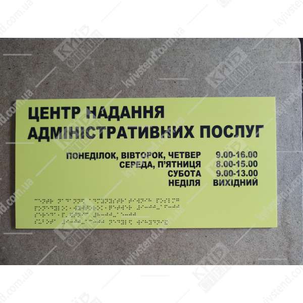 Тактильная табличка с шрифтом Брайля «Центр предоставления услуг для людей с инвалидностью»