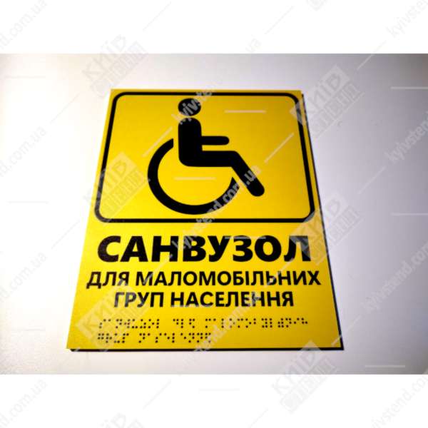 Тактильная табличка Санузел для маломобильных групп населения со шрифтом Брайля